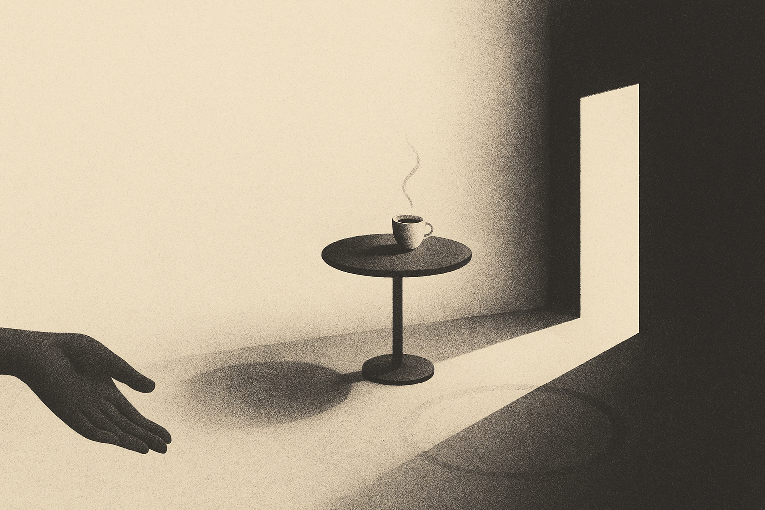 nur Tisch, Tasse, eine Stille,