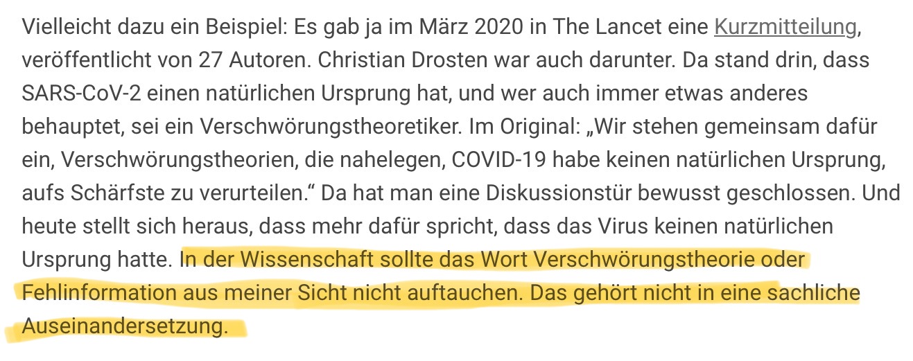 „In der Wissenschaft sollte das Wort Verschwörungstheorie oder Fehlinformation aus meiner Sicht nicht auftauchen. Das gehört nicht in eine sachliche Auseinandersetzung.“